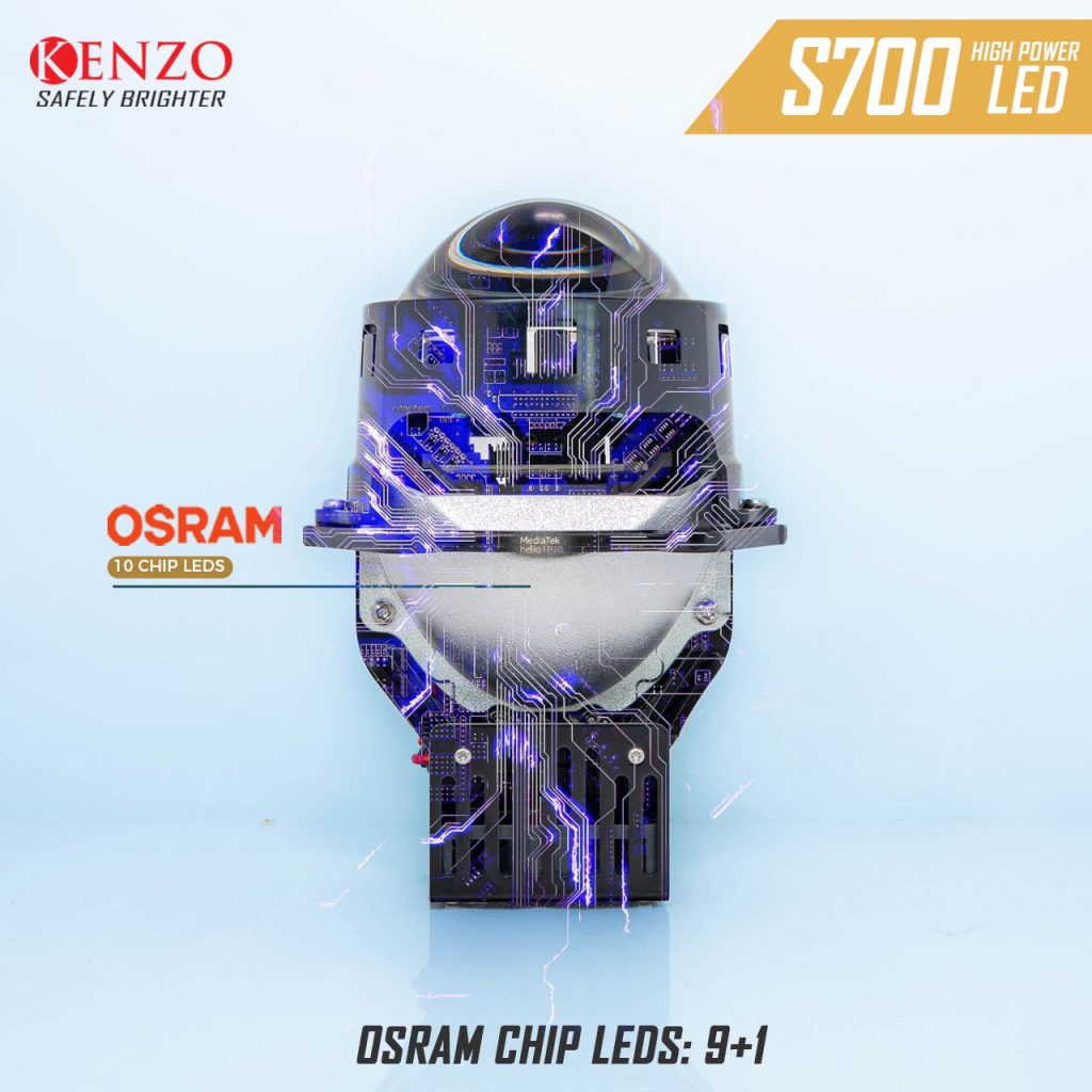 Bi Led Hiệu suất cao Kenzo S700 với 10 Chip LED OSRAM tiên tiến từ CHLB Đức mang lại độ sáng Mạnh mẽ và khả năng bám đường hiệu quả nhờ Nhiệt màu 5200K (Trắng ngả Vàng)